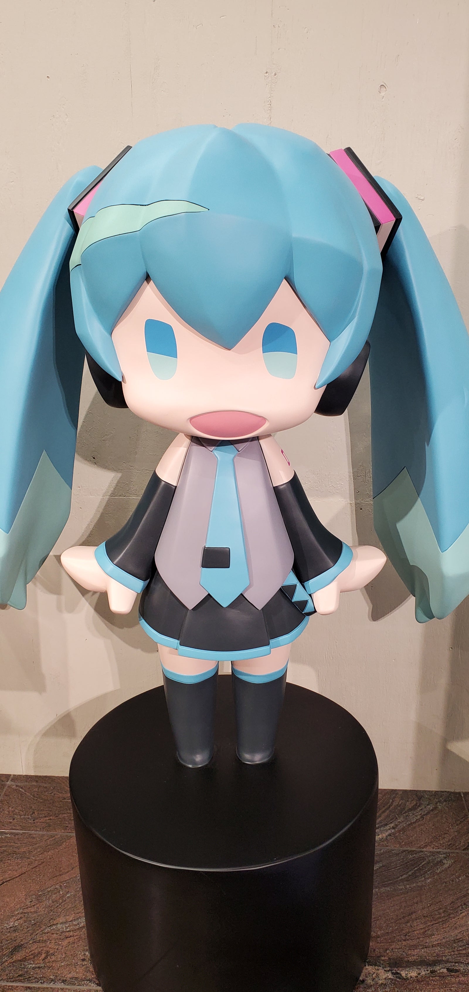 Miku enthusiasts were treated to various iterations through Good Smile Company figurines, and these figures extend beyond just scale figures. WonHobby G showcased not only gorgeous and newly unveiled Miku scale figures, such as her in a gorgeous traditional kimono, but a wide variety of other figures, like the collaborative Miku x Cinnamoroll Nendoroid and the Miku Huggy! This year also saw the showcase of highly detailed and expertly crafted techwear inspired by Hatsune Miku herself, including robotic-like hairclips, bracelets, caps, masks, and even an actual Miku inspired megaphone! A massive statue of the Hatsune Miku Hello Good Smile figure also greeted fans at the entrance to the showroom.