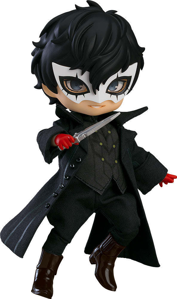 From the popular game "Persona5 Royal" comes a Nendoroid Doll of the protagonist, Joker, in his Phantom Thieves outfit! The Nendoroid Doll series of palm-sized action figures feature the same heads as standard Nendoroids, but alternate doll-like bodies that are highly articulated and can easily be dressed-up into different outfits! Be sure to add him to your collection! *Skin tone of this Nendoroid Doll is a special color to match that of the original character. Set Contents: Figure Coat with inner clothing attached Pants Boots (with magnets in soles) Dagger Interchangeable hand parts (pointing hands (left/right), dagger-holding hand (right)) Magnetic base (for magnetic soled shoes) Articulated stand *Please note that the torso display is not included with this product. *Displaying clothing on a figure for an extended period of time may result in color transfer to the figure body. *Please note that some Nendoroids, Nendoroid Dolls and outfits may not be compatible depending on the character design.