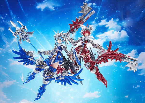 Presenting GODWING DRAGON KNIGHT Ren Firedragon, the third entry in the Akiman x Max Factory plastic model series "GODZ ORDER"! The plastic model is based on an original design by Akiman carefully brought into model form by Max Factory. Three pre-painted face plates?a standard face, a shouting face and a smiling face?are included. An unpainted face plate and eye decals are included as well. Her uniquely designed apron is created with pre-painted PVC parts. The skirt is made with pre-painted PS parts, and decals can be applied to both the frill and main parts to capture the look of the original illustration. Her skirt is also articulated, allowing for unobstructed movement of her legs for posing. The included rifle parts (x2) can be transformed into a great sword. The model comes with arm armor, a waist mounting unit, two swords (for use with Ren) and a short sword. The model can also be displayed without any equipment on. Hand parts are made with flexible PVC. An articulated stand is included to display the model in a variety of poses.