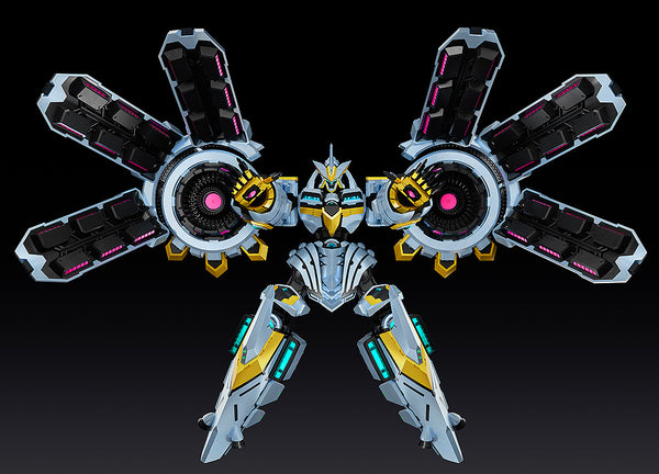 From "Yu-Gi-Oh! Official Card Game" comes a fully articulated plastic model of Divine Arsenal AA-ZEUS - Sky Thunder! The model, which is packed with details, features precise modeling and dynamic proportions. The impressive model stands at 190mm tall and 200mm wide. By adjusting the flight unit and using interchangeable parts, it is possible to recreate the battle scene from the Yu-Gi-Oh! Card Game 25th Anniversary Special Video. Parts are made with seven different colors of runners, making it easy to create the kit with a simple assembly and placement of stickers. Details can also be painted to achieve an even more faithful recreation of the card illustration.