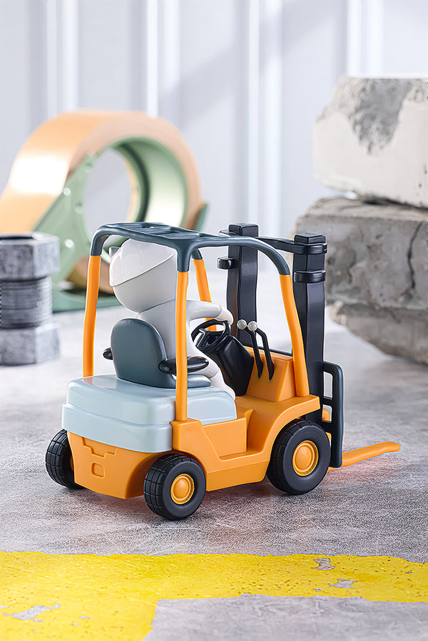 The figure is based on illustrator Kumamine's original illustration of Shigoto Neko riding on a forklift, which zooms forward when pulled back and released! Yoshi!