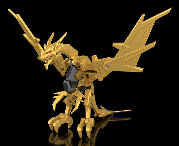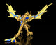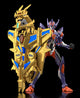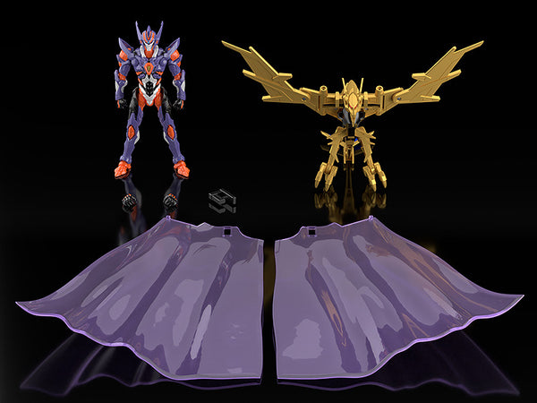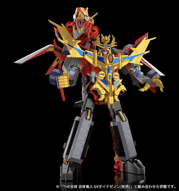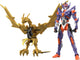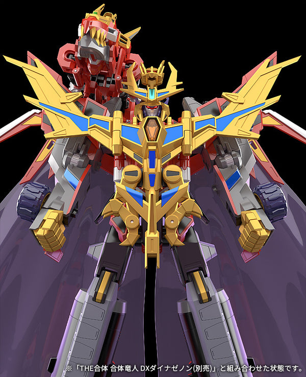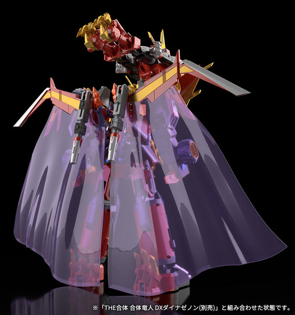 Gridknight · Goldburn · Gridknight interchangeable hand parts · Cape (left/right) · Display stand parts and support parts · Special packaging sleeve · Fully painted complete combinable action toy. · Gridknight is approx. 14cm tall and features several points of articulation. · Dynamic Cannon (sold separately) can be equipped to Gridknight.* · Goldburn can be transformed into shield mode. · Gridknight, Goldburn and THE GATTAI Gattai Ryujin DX Dynaznon (sold separately) can be combined to create "Cho Gattai Ryuo Kaiser Gridknight". · A cape made with translucent parts is included. · Combine Gridknight and Goldburn to create Gridburn Knight! · A special support arm to display Gridburn Knight riding Dyna Rex (sold separately) is included. *Dyna Soldier, included with THE GATTAI Gattai Ryujin DX Dynazenon (sold separately), can be transformed into the Dynamic Cannon.