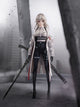The small metal clasps and belts across her monotone outfit and her jet-black weapon have been faithfully captured in figure form.