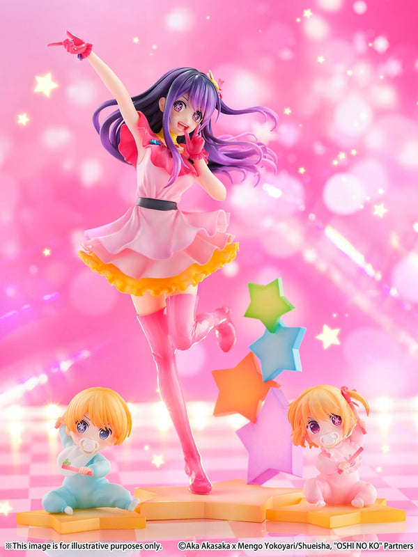 Ai's lively energy is captured in the figure as she dances in her vibrant attire, her eyes beaming with happiness. Beside her, Aqua and Ruby enthusiastically wave glow sticks while dancing and cheering her on. The figure also meticulously recreates the distinctive eyes of each character. Don't miss the chance to add this three-character figure to your collection.