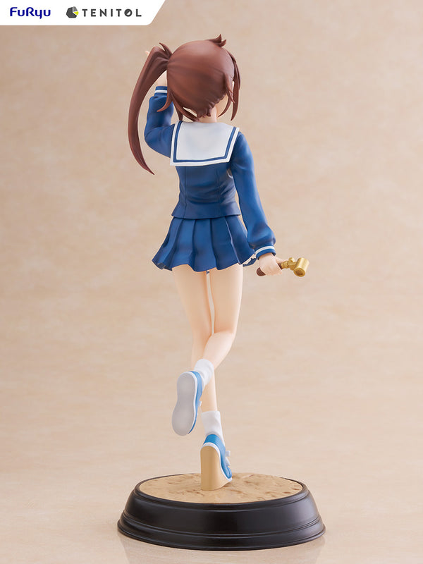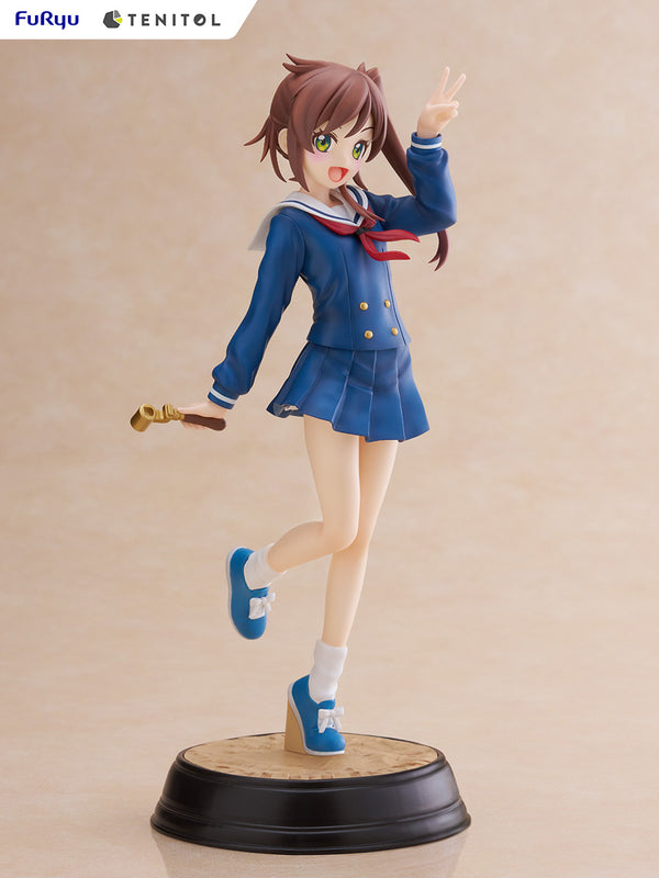 The figure is sculpted with a bursting smile, a brake handle, and a pedestal inspired by the play, all of which give a sense of "Shizuru Chikura"!