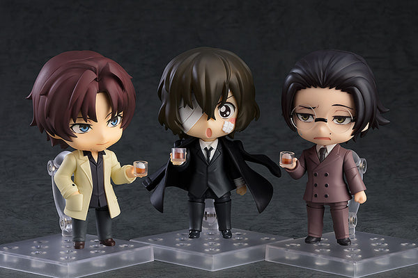 From the anime series "Bungo Stray Dogs" comes a Nendoroid of Ango Sakaguchi! Face plates: ・ Confident face ・ Exasperated face ・ Panicked face Optional parts: ・ Camera ・ Cat miniature figure ・ Glass of whisky・ Other optional parts for different poses.