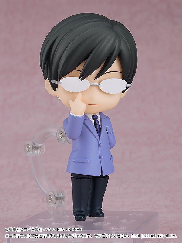 From the anime series "Ouran High School Host Club" comes a Nendoroid of Kyoya Ootori. Face plates: ・ Smiling face ・ Smug face ・ Sidelong glancing face Optional parts: ・ Binder ・ Pen ・ Cell phone ・ White lens glasses ・ Other optional parts for different poses.