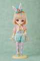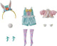 Her outfit also comes with an adorable pastel headband with rabbit ears as well as strap shoes that match her outfit.