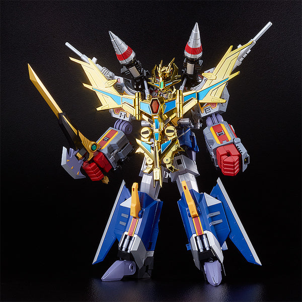 Can be combined with Gridknight from THE GATTAI Gridknight & Goldburn and THE GATTAI Gattai Ryujin DX Dynazenon (each sold separately) to form Cho Gattai Ryuo Kaiser Gridknight.
