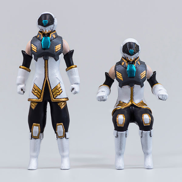 · Two pilot miniature figures in the same scale as the mecha are included.