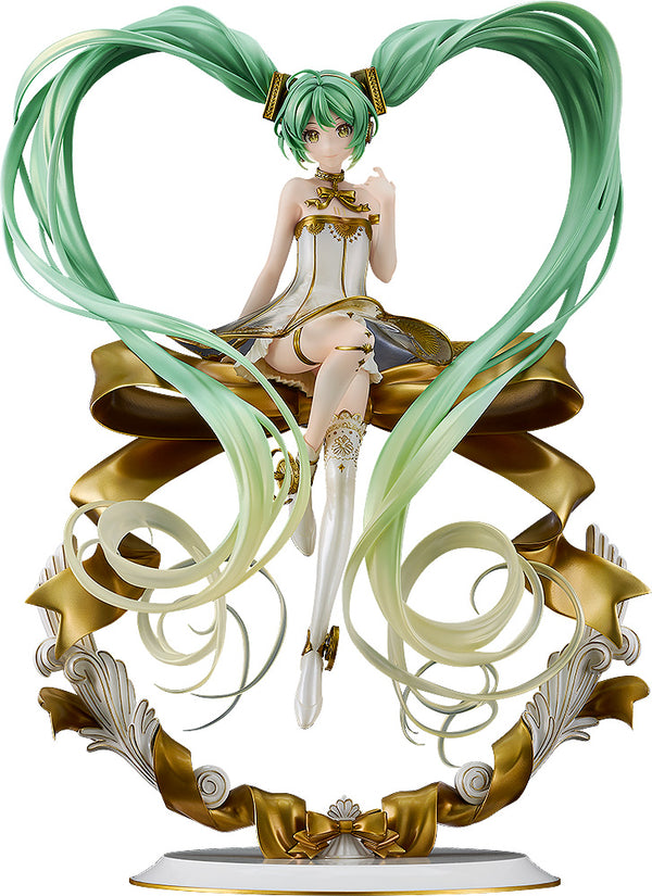 Illustrator Rella's fantastic, beautiful main visual illustration has been carefully brought into figure form. Miku's gramophone-inspired dress features translucent parts and delicate pearl and gold paintwork.