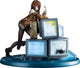 Her delicate silhouette, ephemeral expression, and even the texture of the tights on her slender legs have been carefully recreated. She rests her body on countless CRT monitors displaying Amadeus, an AI based on Kurisu Makise’s data, expressing a bleak worldline through their contrast.