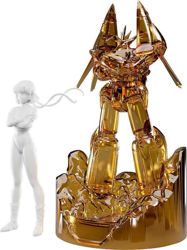 While the model comes with few parts, it features incredibly detailed modeling that can be enjoyed with a simple assembly. The Gunbuster is created with flamelike translucent yellow parts. The model makes for a perfect display piece as a small statue. A plastic model of Noriko Takaya is included in white. The model can be enjoyed as-is or it can be painted. *Eye decals for Noriko Takaya model are included.