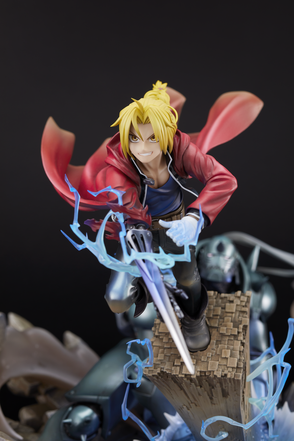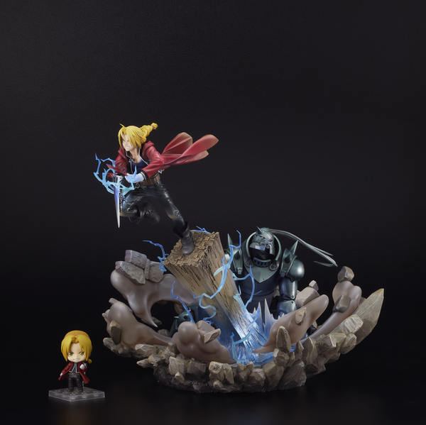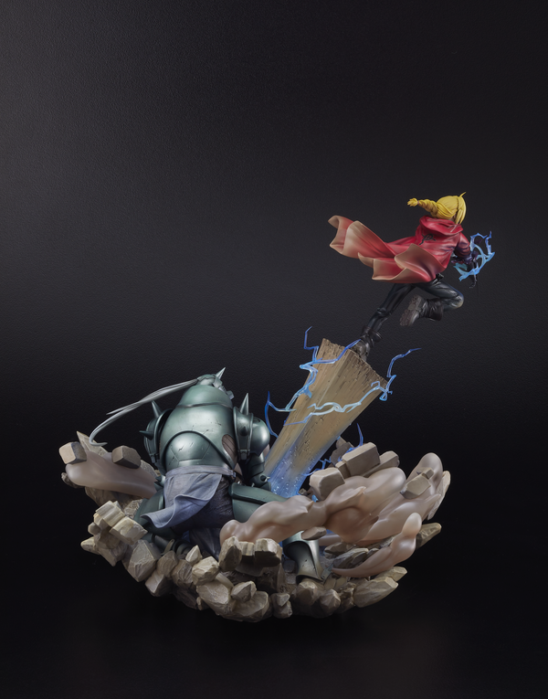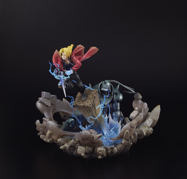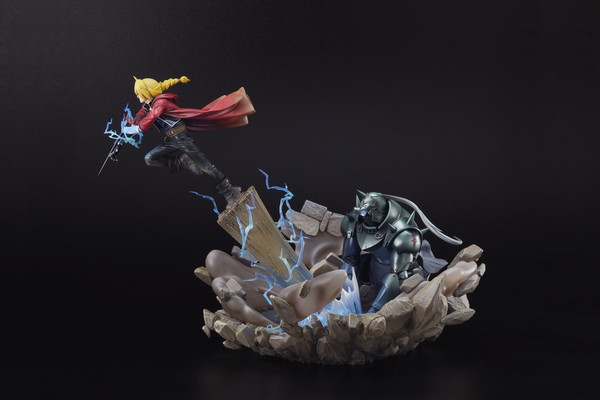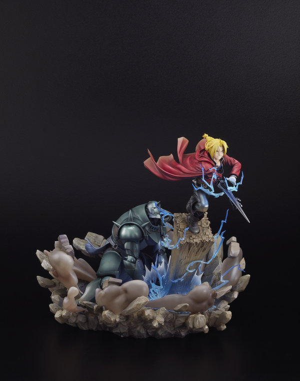 From "Fullmetal Alchemist: Brotherhood" comes a large-size statue of Edward Elric and Alphonse Elric! The statue features a perfectly captured still of the Elric brothers in battle, with their surroundings also perfectly crafted and incorporated into a single statue. Various small details like the dust clouds, debris and alchemical energy discharge have all been created in incredible detail. Be sure to add this spectacular statue that encapsulates the unique charm of Fullmetal Alchemist to your collection.