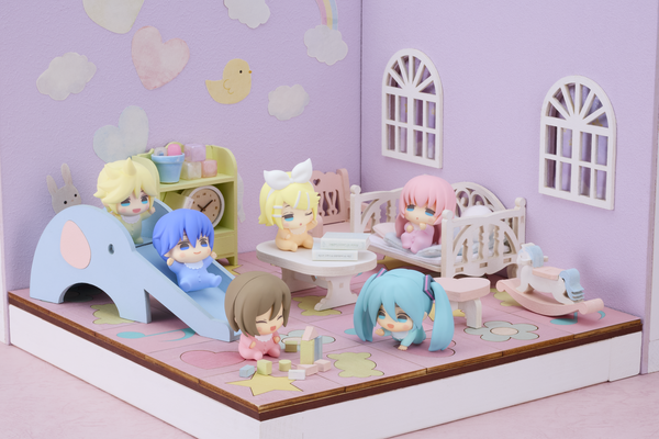 From "Piapro Characters" comes anew baby-like chibi figures of Hatsune Miku, Kagamine Rin, Kagamine Len, Megurine Luka, MEIKO and KAITO! The body and head parts of the figures are interchangeable. Be sure to add them to your collection!